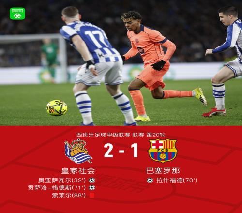 体育播报1月19日宣 西甲第20轮,皇家社会坐镇主场阿诺埃塔体育场迎战巴塞罗那。上半场,奥亚萨瓦尔被吹后再次进球,巴萨费尔明、德容、亚马尔三球被吹,亚马尔点球也被取消。易边再战,奥尔莫、孔德中柱,拉什福德破门,格德斯建功,久保建英伤退,索莱尔飞铲佩德里直红。最终皇家社会2-1巴萨。积分榜方面,巴萨49分仅1分领跑,皇社24分第八。